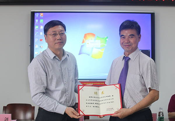 张金锁校长在致辞中简要介绍了我校一年来落实习总书记重要批示及陕西省关于加快延安大学建设发展精神情况,展示了学校发展的美好愿景,分析了我校化学工程与技术学科在申报博士点中所存在的“瓶颈”问题,希望专家、学者和校友能继续关注、支持我校的学科建设和博士点申报工作,要求化工学院对标博士点申报指标,解放思想,凝聚力量,采取超常规的办法,促进该项工作。刘小淼处长宣读了我校聘请吕剑、王绪绪、刘忠文教授为化工学院客座教授的文件,张金锁校长为三位教授颁发了证书。